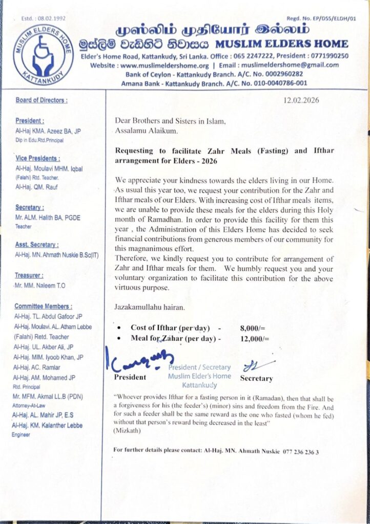 This year, due to the rising cost of food items and essential supplies, it has become increasingly difficult to manage the daily expenses of providing proper meals during Ramadan. To ensure that our elders are not deprived of the blessings and joy of this holy month, the administration of the Elders Home has decided to seek financial contributions from kind-hearted individuals and organizations within our community.